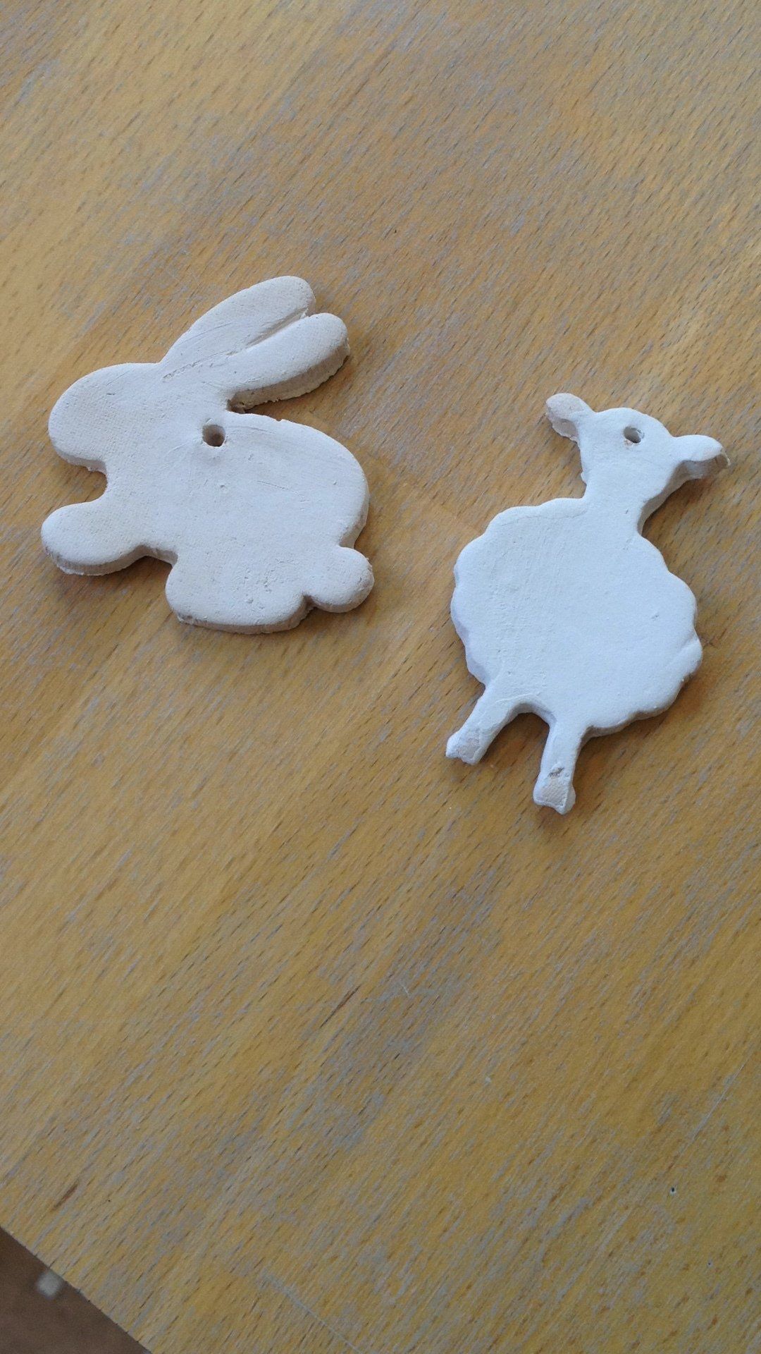eine Osterhenne für bunte Eier hübsche Anhänger eine Kuchenplatte mit Vase eine Rosenkugel für's Beet